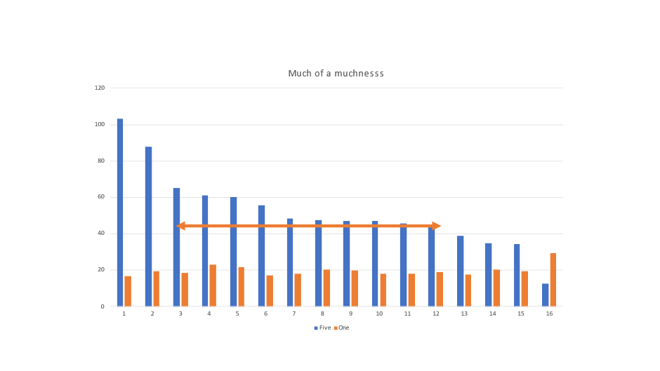 I have analysed the returns from funds from several fund management firms, well known to most investors, that approximate to the ‘balanced’ or ‘managed’ category which would ‘do the job for ordinary investors. As the chart (see below) shows, there is not a big variance in returns from numbers three to thirteen over one year and five years: however, numbers one and two are outstanding over five years but pretty much at or below average over one year, while fourteen, fifteen and sixteen at the bottom for 5 years were much better over one year. So no strategy or investment style lasts for ever.